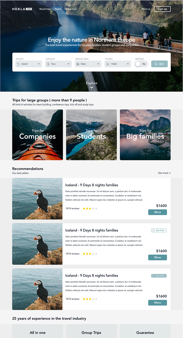 The current interface was focused mostly on clients from Scandinavian countries and the information of the trips was not very clear. It also needed some new styling more related to the experiences they were selling.